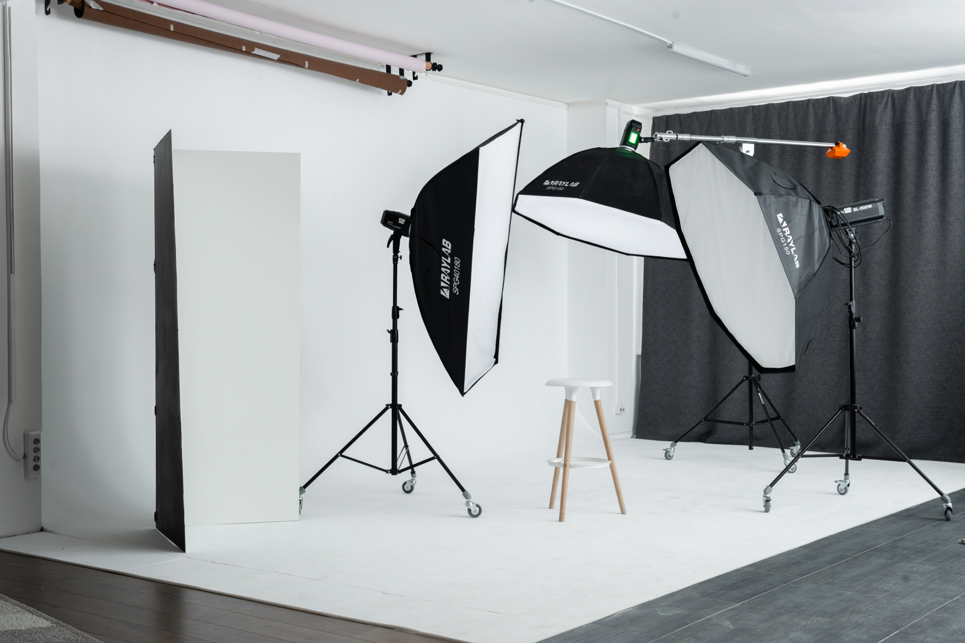 Большой, светлый зал с высокими потолками и профессиональным оборудованием. В зале 3 больших зоны, включая: угловую циклораму 9х4 м вместимостью до 50 человек, стилизованный интерьер с бетонной стеной вместимостью до 50 человек, а также 3 отдельные локации по съёмки до 5 человек.